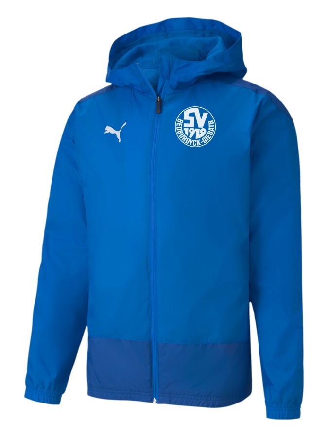Die teamGOAL Trainings-Regenjacke wurde entwickelt, um dein Team bei jedem Wetter zu unterstützen. Sie ist mit hochwertigen feuchtigkeitsableitenden, atmungsaktiven Materialien und mit einer Kapuze für Regenschutz ausgestattet, während das auffällige PUMA Cat Logo auf der Brust den Look abrundet. Lass dich nicht von Schweiß aufhalten.